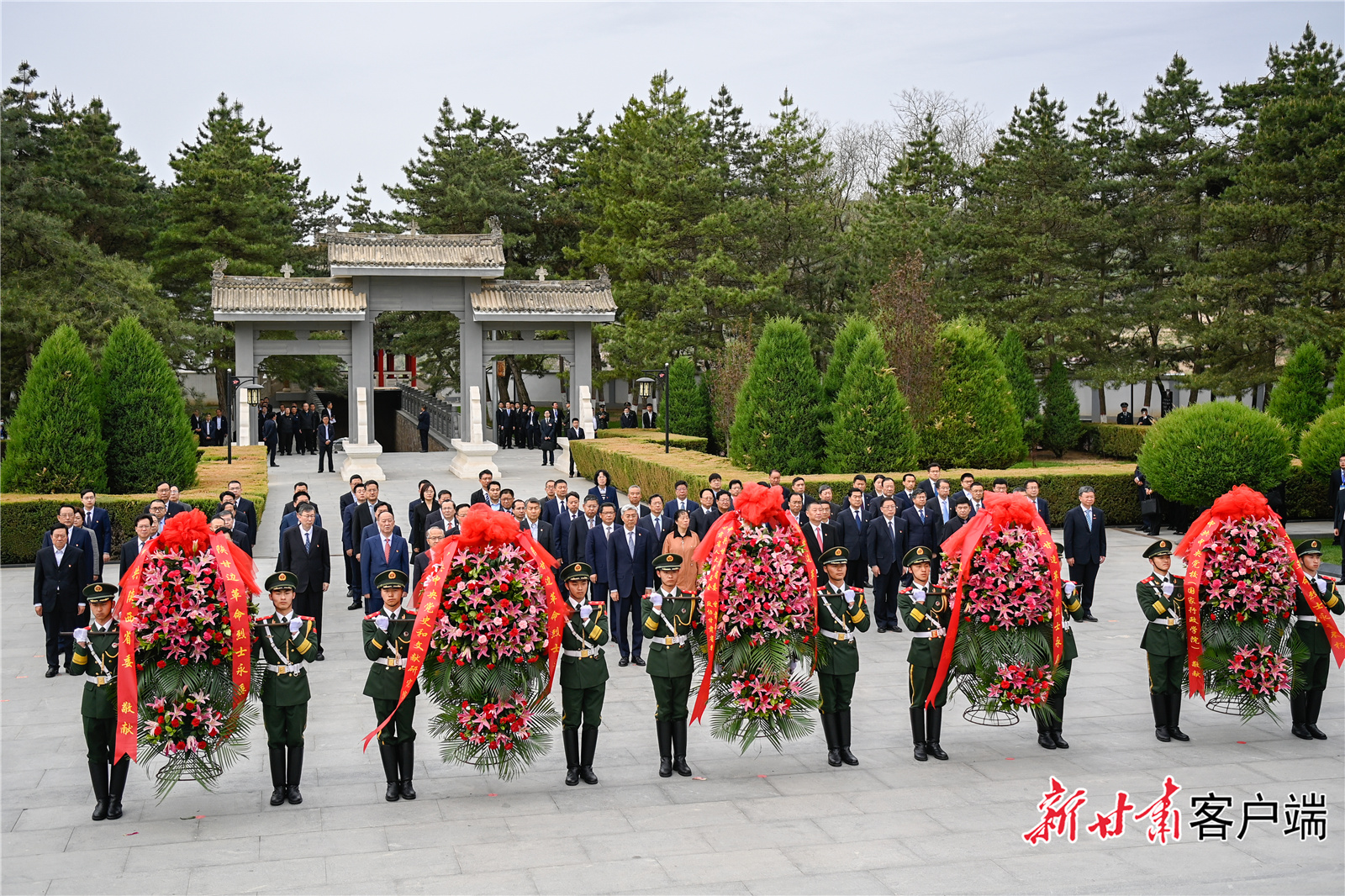 5月11日,南梁精神研讨会在南梁革命纪念馆举行。会前,与会领导和嘉宾向为创建陕甘边革命根据地、为中国革命光荣捐躯的革命烈士敬献花篮。新甘肃·甘肃日报记者 孟捷
