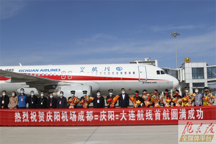 10月31日10时40分许,由四川航空公司执飞的3U6429航班,平稳降落在庆阳机场停机坪上,标志着成都=庆阳=大连航线正式开通。