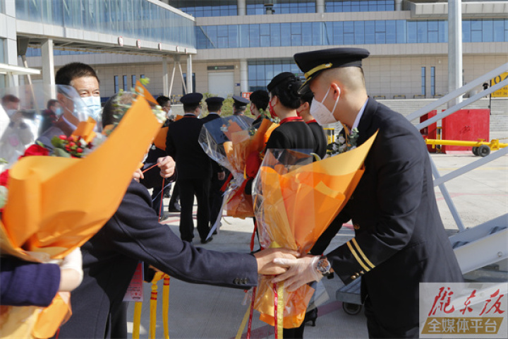 飞机降落后,随即举行了首航仪式。市交通运输局、市文体广电和旅游局以及庆阳机场公司有关负责人参加首航仪式,并向机组人员佩戴庆阳特色香包,献上鲜花表示慰问和感谢。