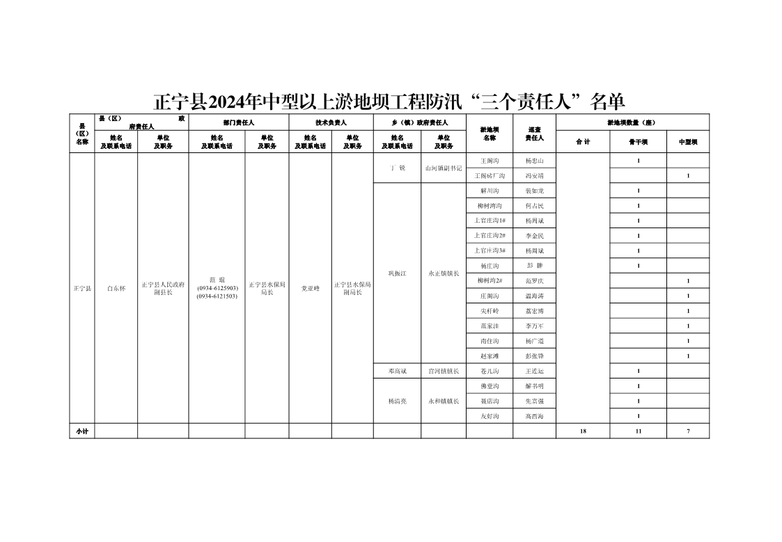 正宁县2024年中型以上淤地坝工程防汛“三个责任人”名单