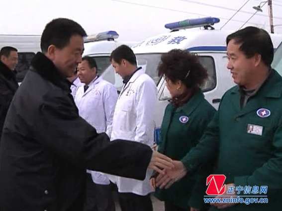 4月10日上午,县长张龙杰,在副县长孔荔维,县长助理、公安局长杨光裕的陪同下,代表县委、县政府看望慰问核桃峪矿井事故抢险救援工作人员。