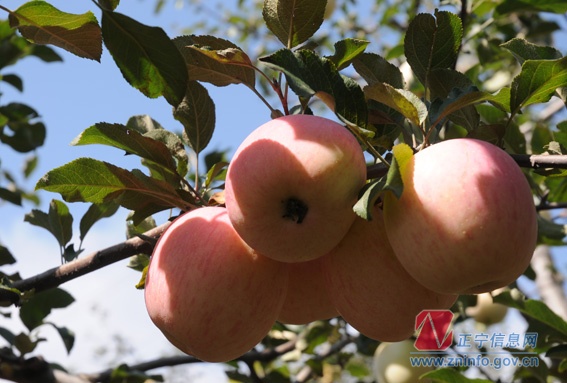 沉甸甸的苹果压弯了技头,今年又是一个大丰收