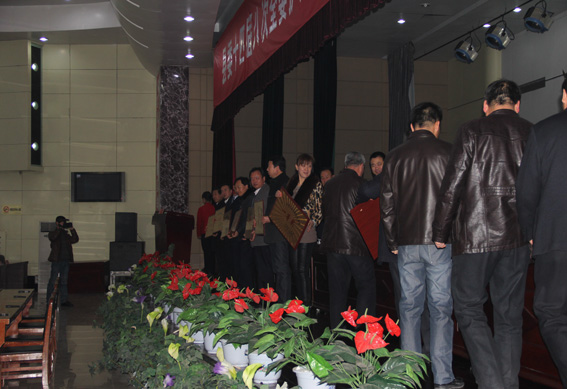 会上兑现了2012年度目标管理奖惩,向59个获奖单位和个人颁发了奖牌;县委吴书记、政府张县长和各乡镇书记、乡镇长签定了2013年目标管理责任书;山河镇、发改局等9个单位做了表态发言;吴书记、张县长分别作了重要讲话。