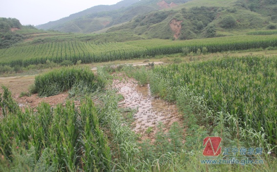 大雨突袭,河水暴涨,支当河边的玉米损毁严重,半是污泥半伏倒。