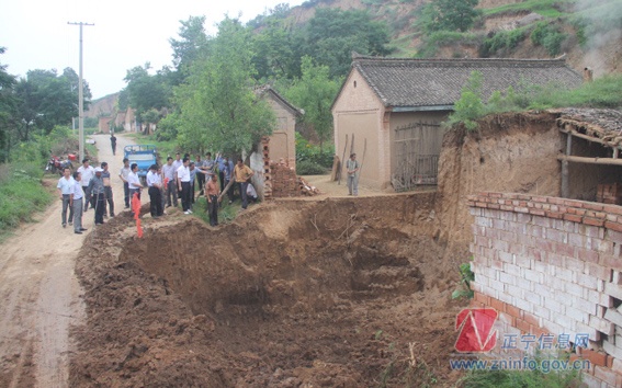 张杰龙一行在湫头乡西沟园子组查看水毁道路情况,要求县交通局从技术上给予最大支持,确保群众安全通行。