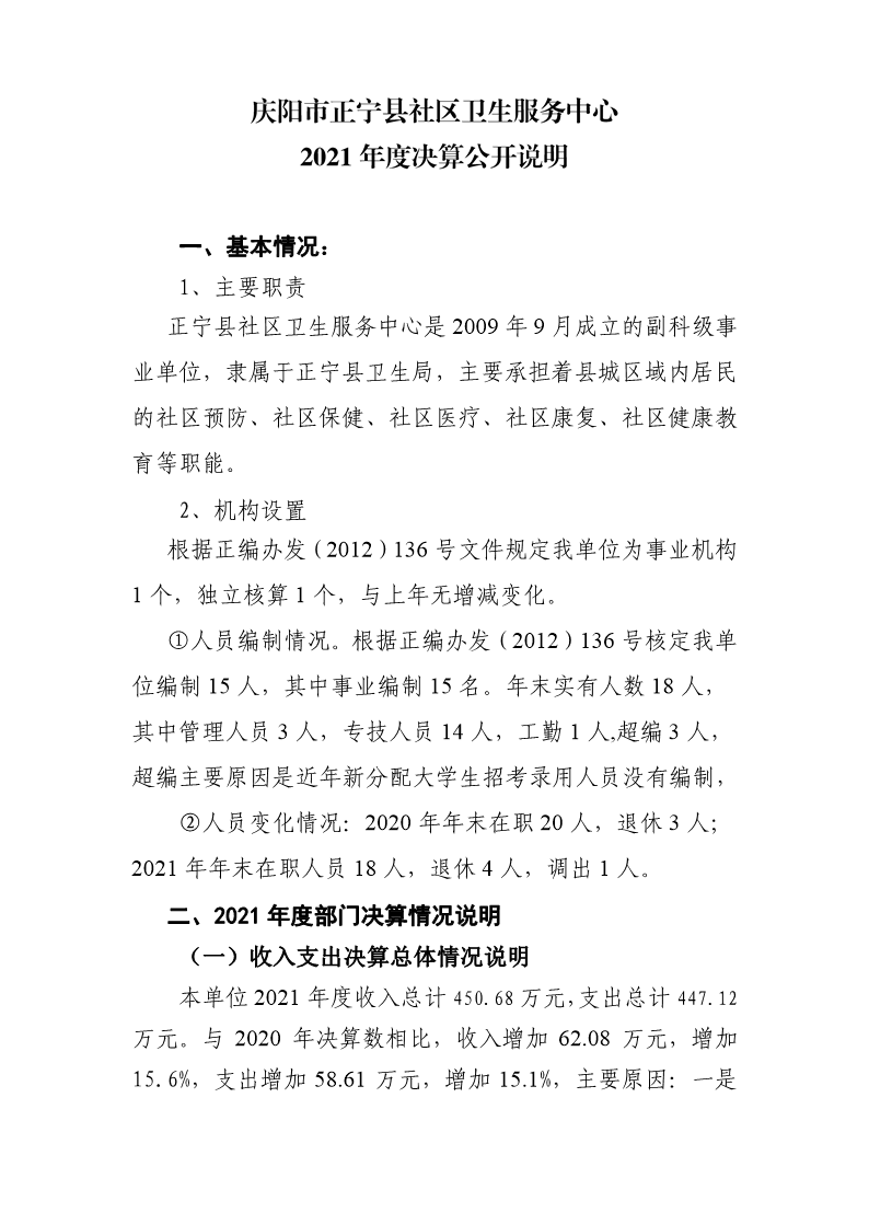 2021年正宁县社区服务中心决算公开