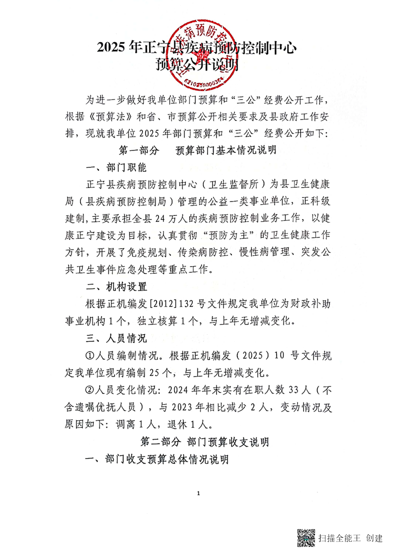 2025年正宁县疾病预防控制中心预算公开
