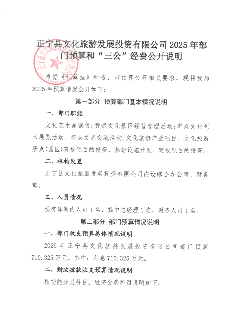 正宁县文化旅游发展投资有限公司2025年预算公开