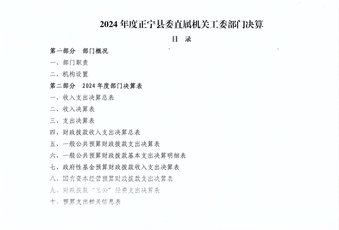 2024年中国共产党正宁县委员会直属机关工作委员会部门决算公开报告