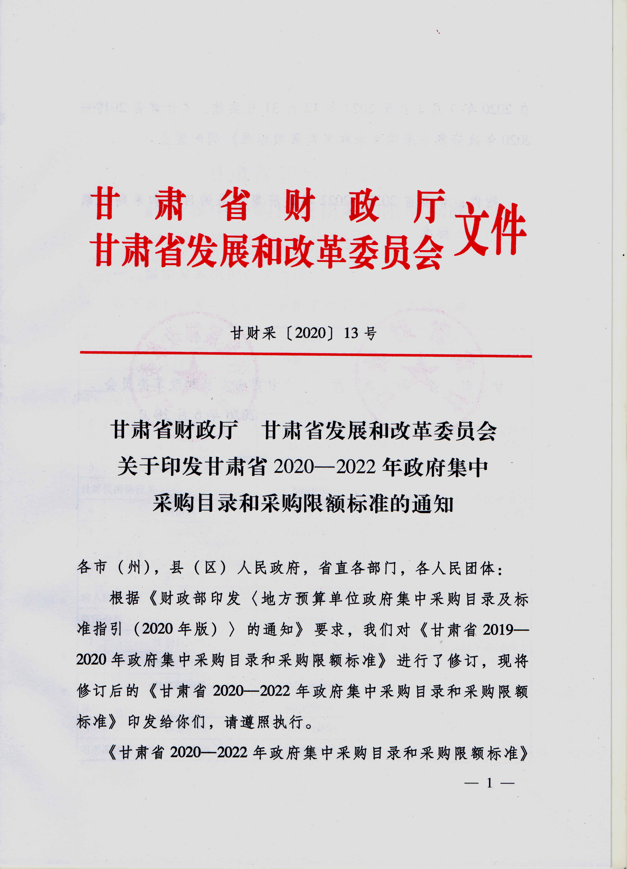 附件:甘肃省财政厅 甘肃省发展和改革委员会关于印发甘肃省2020-2022年政府集中采购目录和采购限额标准的通知(甘财采〔2020〕13号)