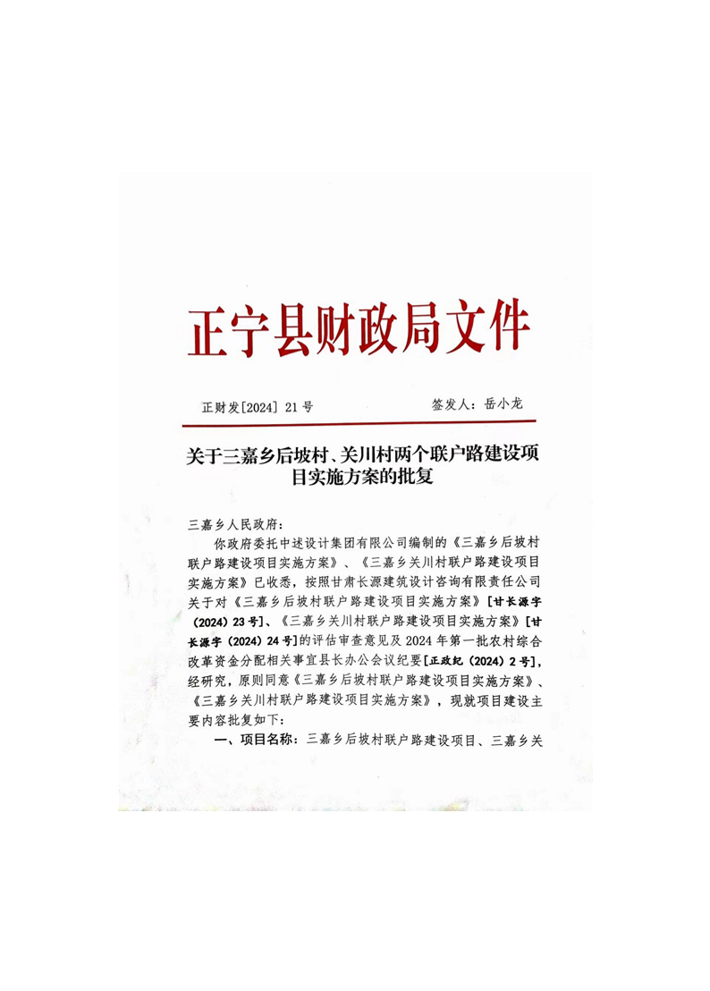 索引号: 3070211020000013000000/2024032600000017 发布机构: 生效日期: 2024-03-26 废止日期: 文 号: 所属主题: 规划信息 关于三嘉乡后坡村、关川村两个联户路建设项目实施方案的批复 来源: 发布时间:2024-03-26 浏览次数: 次 【字体:小 大】 【打印正文】 分享到: 【字体:小 大】