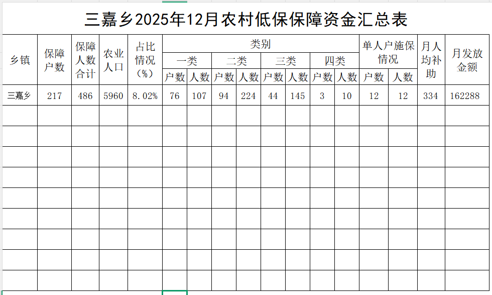 索引号: 3070211020000013000000/2026020900000015 发布机构: 生效日期: 2026-02-09 废止日期: 文 号: 所属主题: 村务公开 三嘉乡2025年12月农村低保汇总 来源: 发布时间:2026-02-09 浏览次数: 次 【字体:小 大】 202602091641152026.png 【打印正文】 分享到: 【字体:小 大】