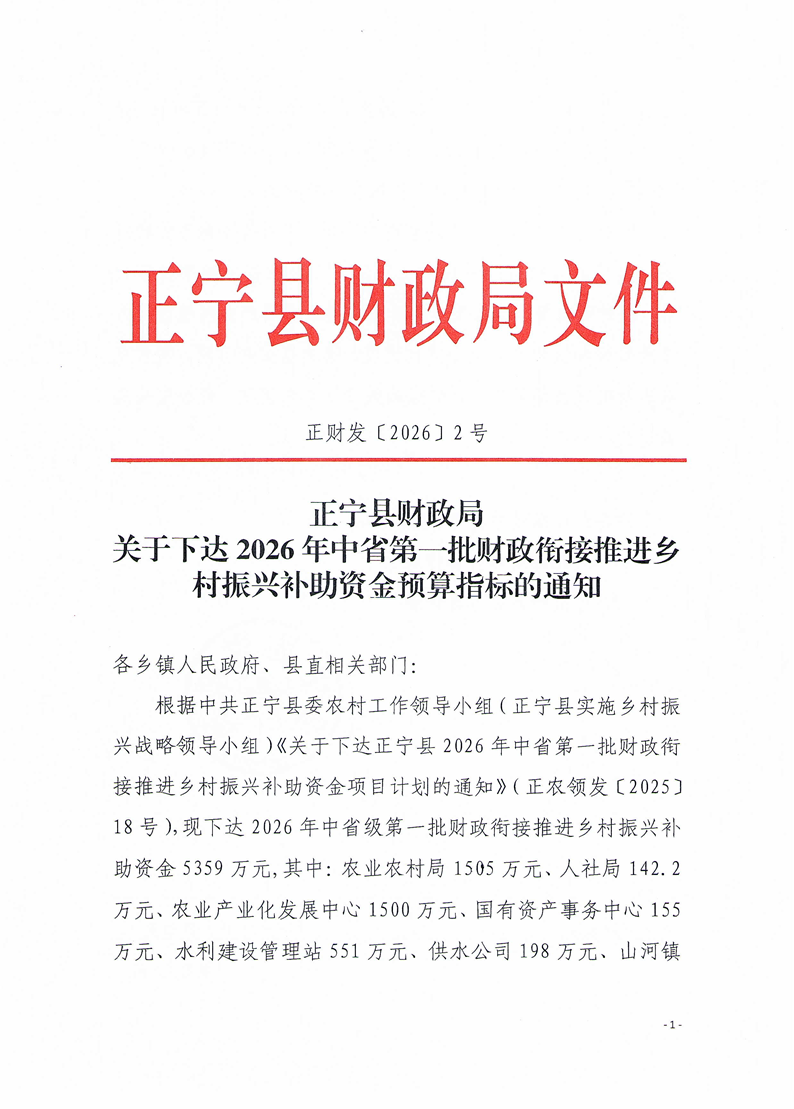 索引号: 62100209000/2026031906714 发布机构: 生效日期: 2026-03-19 废止日期: 文 号: 所属主题: 财政资金直达基层 关于下达2026年中省第一批财政衔接推进乡村振兴补助资金预算指标的通知 来源: 发布时间:2026-03-19 浏览次数: 次 【字体:小 大】 【打印正文】 分享到: 【字体:小 大】