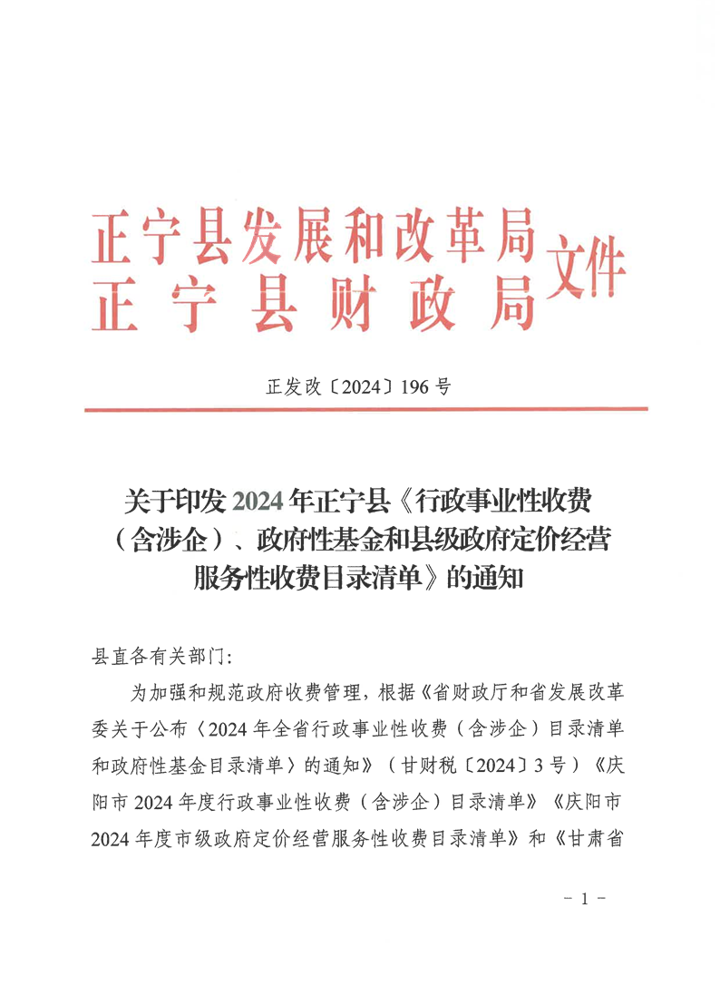 索引号: 3070211020000013000000/2026040200000011 发布机构: 生效日期: 2026-04-02 废止日期: 文 号: 所属主题: 收费目录清单 关于印发2024年正宁县《行政事业性收费(含涉企)、政府性基金和县级政府定价经营服务性收费目录清单》的通知 来源: 发布时间:2026-04-02 浏览次数: 次 【字体:小 大】 【打印正文】 分享到: 【字体:小 大】