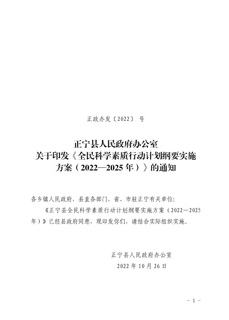 索引号: 3070211020000013000000/2023022400000023 发布机构: 生效日期: 2023-02-24 废止日期: 文 号: 所属主题: 规划信息 正宁县人民政府办公室 关于印发《全民科学素质行动计划纲要实施 方案(2022—2025 年)》的通知 来源: 发布时间:2023-02-24 浏览次数: 次 【字体:小 大】 【打印正文】 分享到: 【字体:小 大】