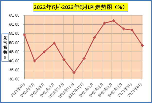 2023年6月份,全省物流业景气指数有所回落,物流运行态势有所放缓。单项指标情况如下: