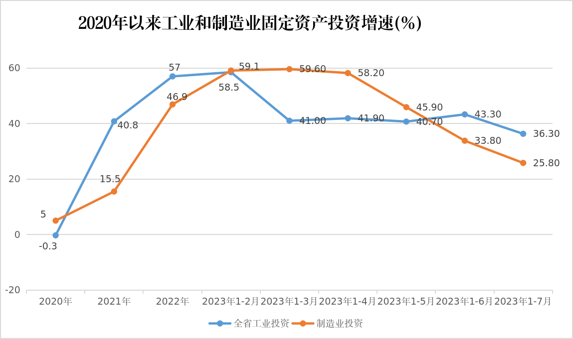1-7月,全省工业固定资产投资同比增长36.3%,增幅较上年同期回落21个百分点,较1-6月回落7个百分点。