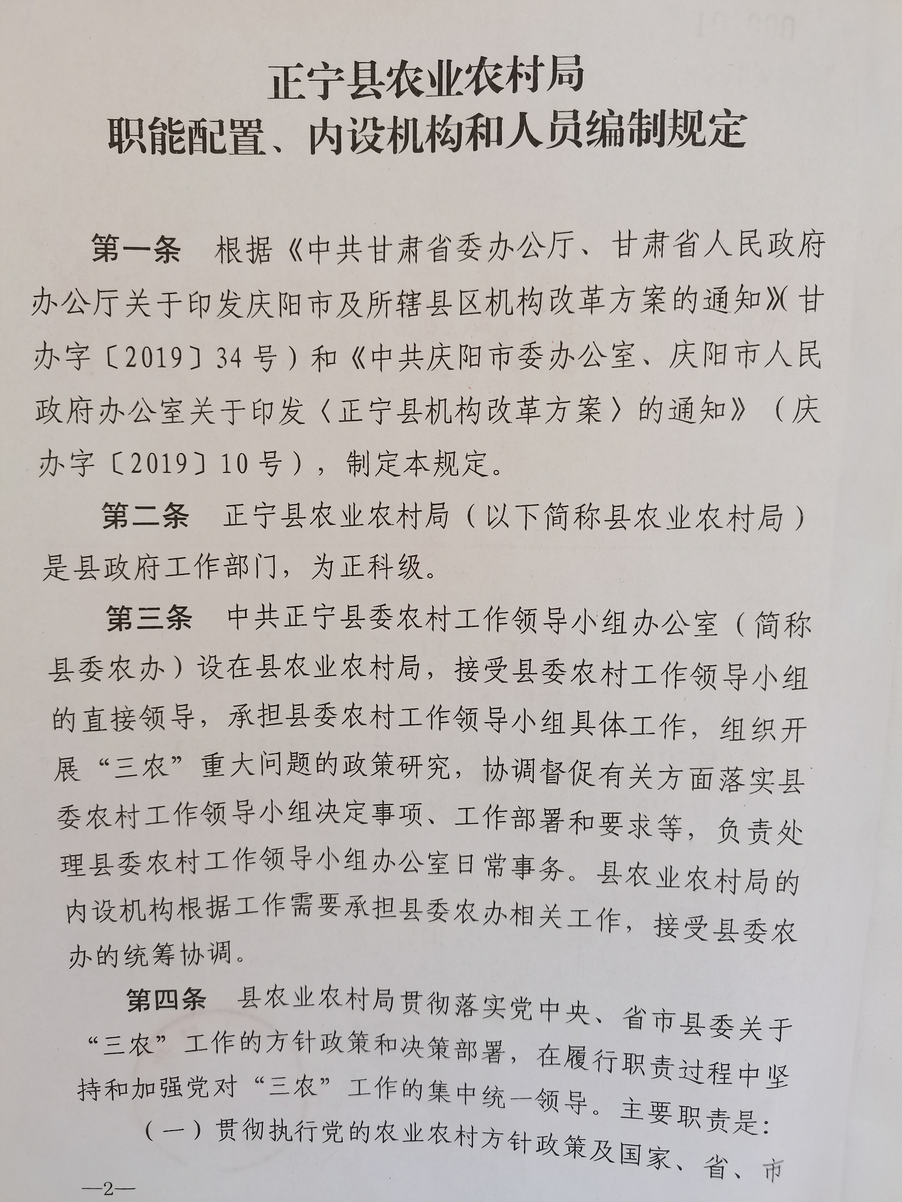 索引号: 3070211020000013000000/2021062200000029 发布机构: 生效日期: 2021-06-22 废止日期: 文 号: 所属主题: 机构职能 《正宁县农业农村局职能配置、内设机构和人员编制规定》 来源: 发布时间:2021-06-22 浏览次数: 次 【字体:小 大】 202106221638320451.jpg202106221638432453.jpg202106221638552403.jpg202106221639083545.jpg202106221639181577.jpg202106221639290957.jpg202106221639401891.jpg202106221639535785.jpg202106221640039931.jpg 【打印正文】 分享到: 【字体:小 大】